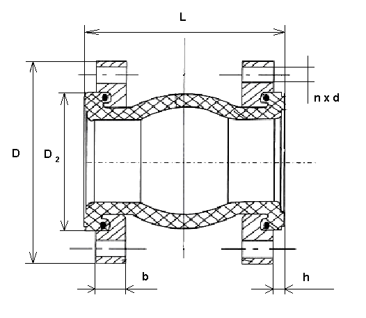 Данный тип резинового компенсатора - Универсальный резиновый компенсатор предназначен для компенсации температурных перемещений во всех направлениях - осевом (сжатие, растяжение), сдвиговом (боковое смещение) и угловом (изгиб).